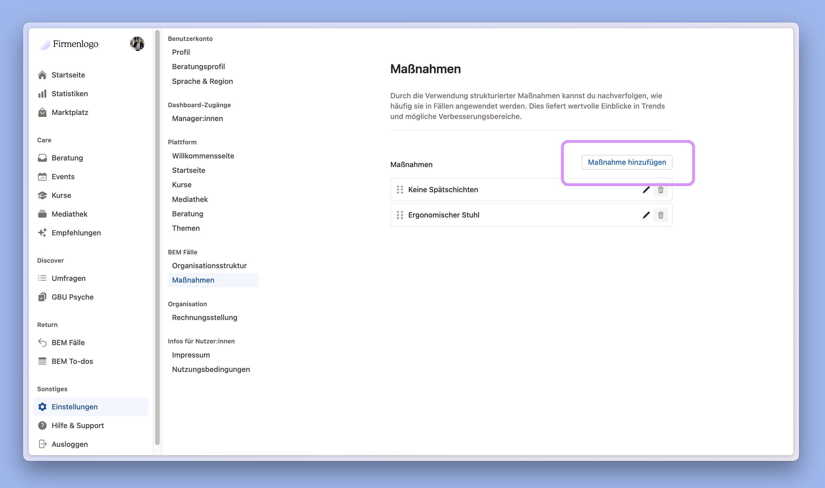 So fügst du einem BEM Fall eine Maßnahme hinzu